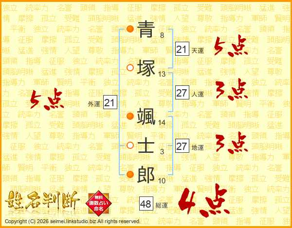 青塚颯士郎さんの総運は48画の4点!
