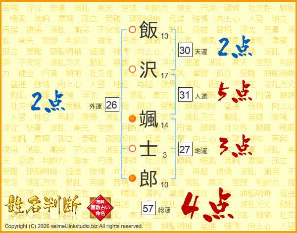 飯沢颯士郎さんの総運は57画の4点!