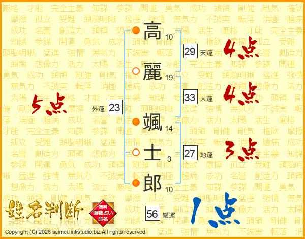高(10画)麗(19画) 颯(14画)士(3画)郎(10画)