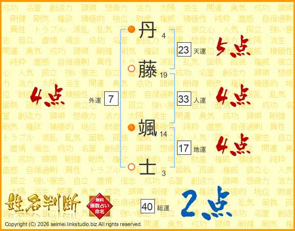 丹藤颯士さんの天運は23画の5点!