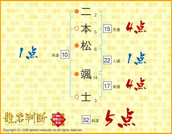 二本松颯士さんの総運は32画の5点!
