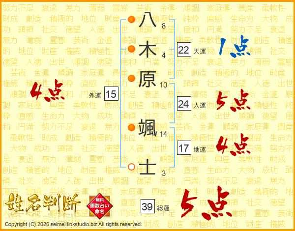 八(8画)木(4画)原(10画) 颯(14画)士(3画)