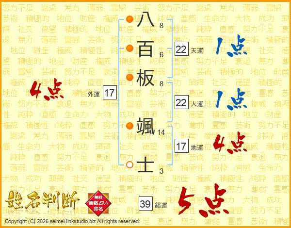 八百板颯士さんの総運は39画の5点!
