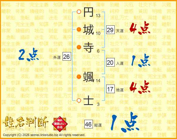 円(13画)城(10画)寺(6画) 颯(14画)士(3画)