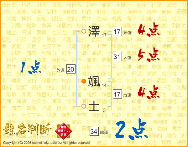澤颯士さんの総運は34画の2点!