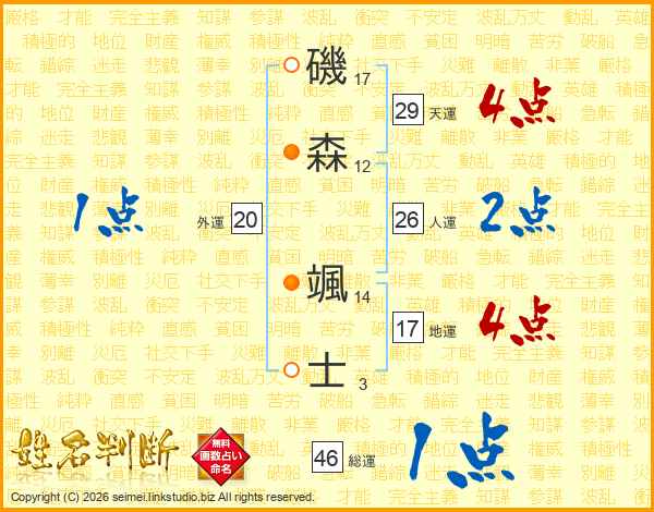 磯森颯士さんの総運は46画の1点!