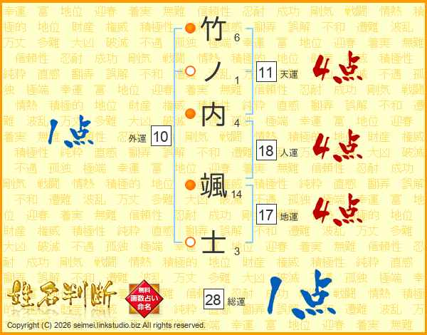 竹ノ内颯士さんの天運は11画の4点!