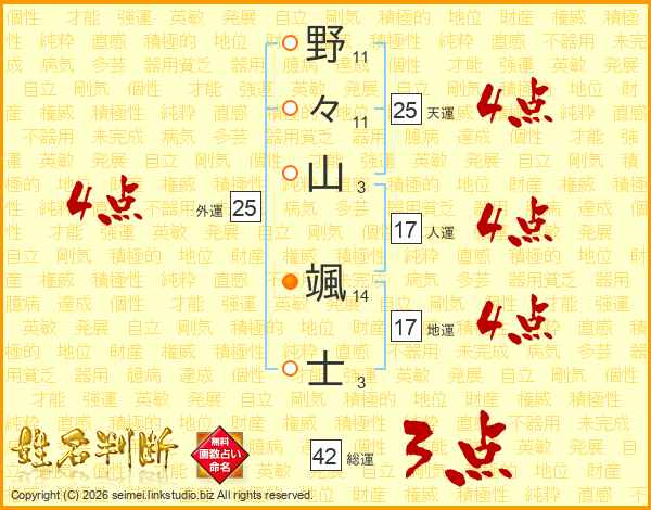 野々山颯士さんの天運は25画の4点!