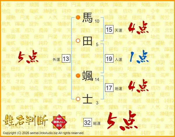 馬田颯士さんの総運は32画の5点!
