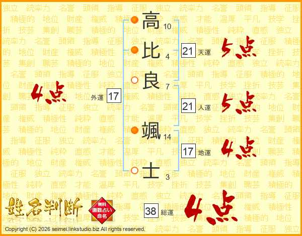 高(10画)比(4画)良(7画) 颯(14画)士(3画)