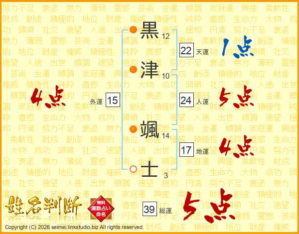 黒津颯士さんの総運は39画の5点!
