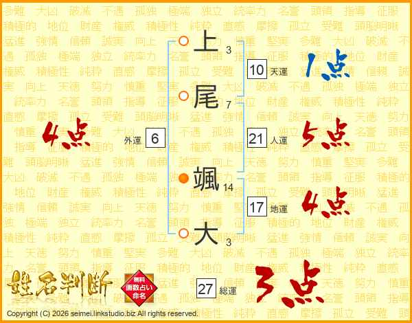 上(3画)尾(7画) 颯(14画)大(3画)
