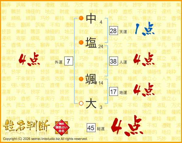 中塩颯大さんの総運は45画の4点!