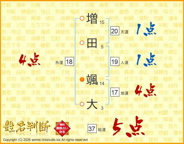 増田颯大さんの総運は37画の5点!