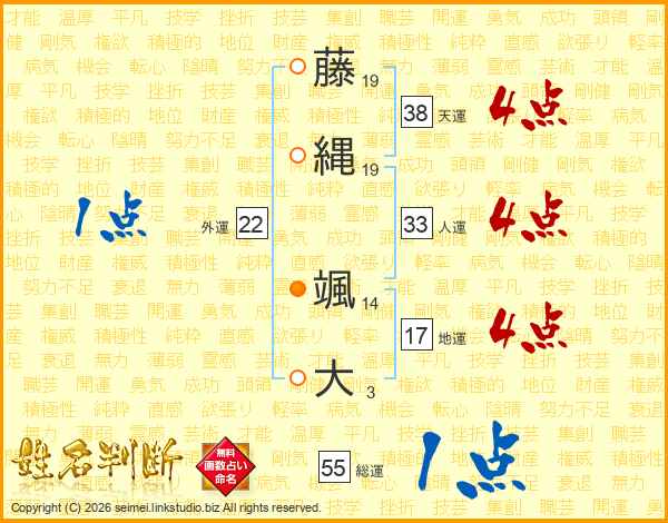 藤(19画)縄(19画) 颯(14画)大(3画)
