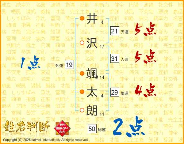 井沢颯太朗さんの天運は21画の5点!