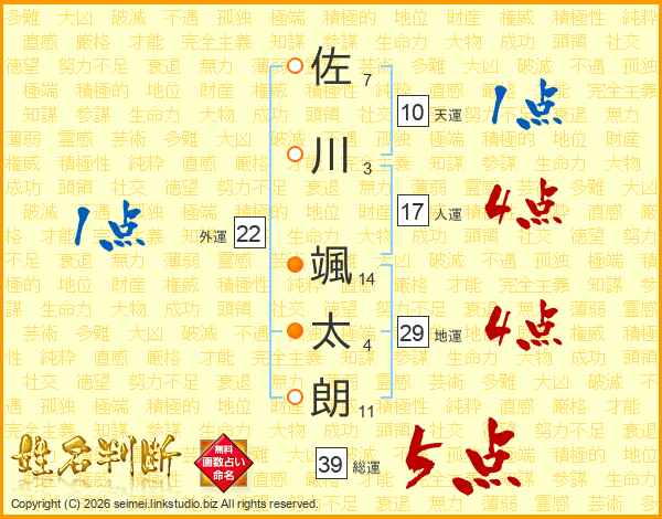 佐川颯太朗さんの総運は39画の5点!
