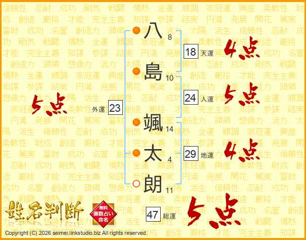 八島颯太朗さんの総運は47画の5点!