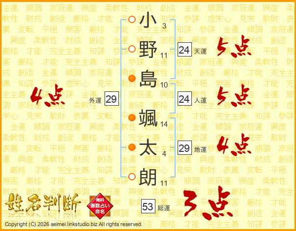 小野島颯太朗さんの天運は24画の5点!