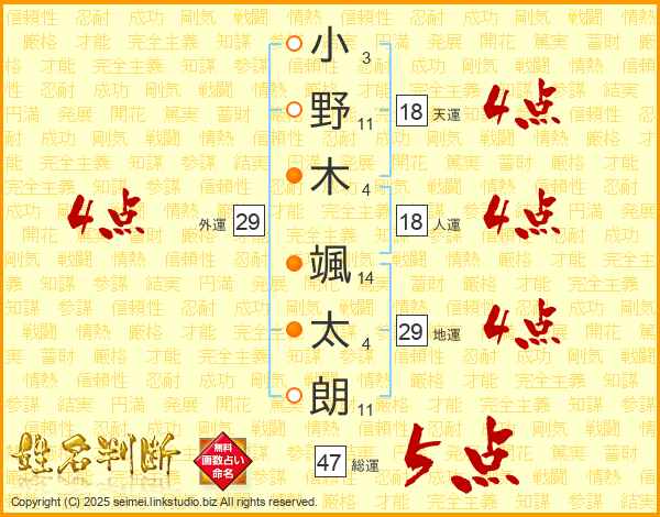 小野木颯太朗さんの総運は47画の5点!