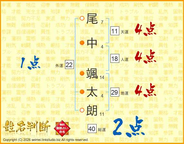 尾中颯太朗さんの天運は11画の4点!