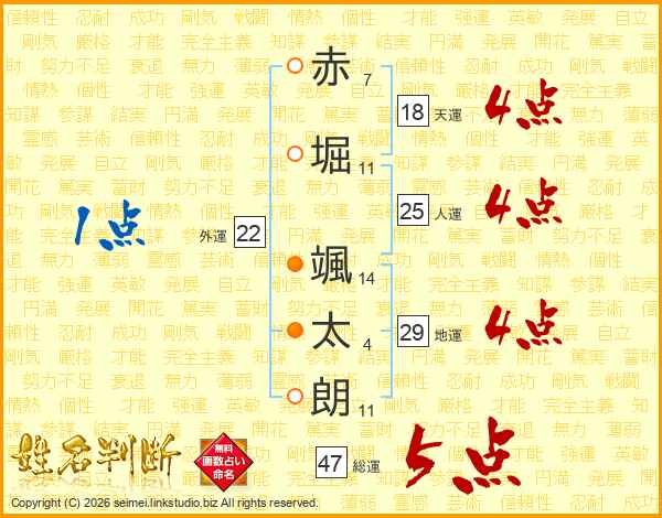 赤堀颯太朗さんの総運は47画の5点!