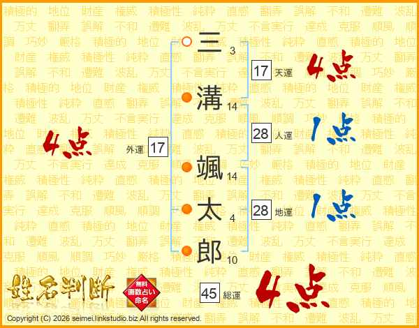 三(3画)溝(14画) 颯(14画)太(4画)郎(10画)