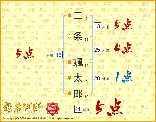 二条颯太郎さんの総運は41画の5点!