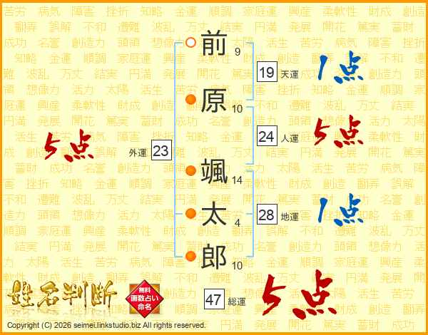 前(9画)原(10画) 颯(14画)太(4画)郎(10画)