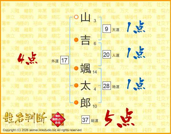 山吉颯太郎さんの総運は37画の5点!