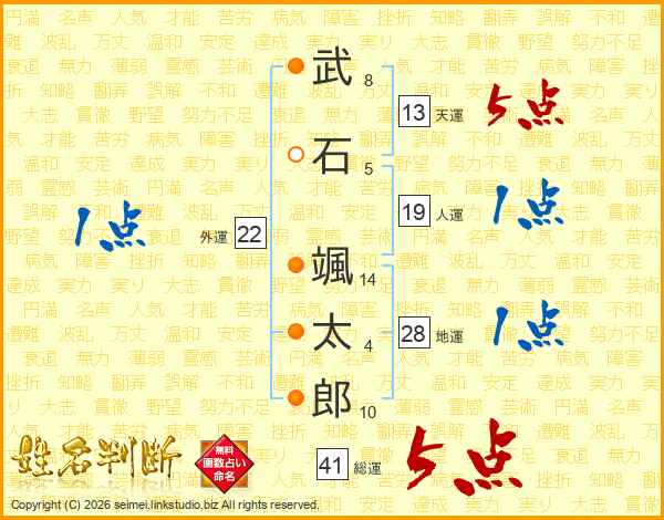 武石颯太郎さんの天運は13画の5点!