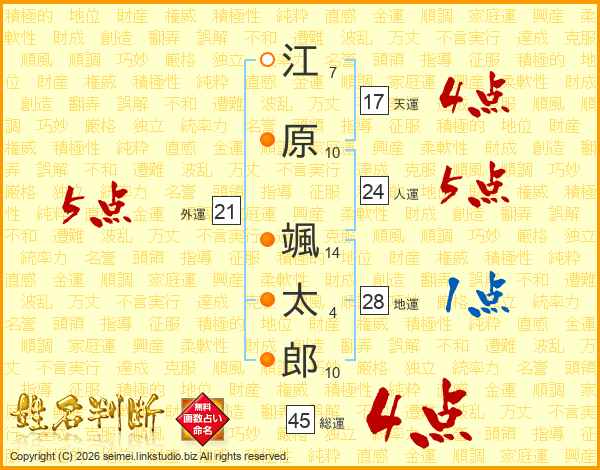 江(7画)原(10画) 颯(14画)太(4画)郎(10画)