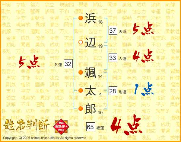 浜辺颯太郎さんの総運は65画の4点!