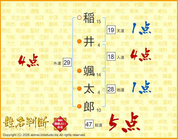 稲井颯太郎さんの総運は47画の5点!