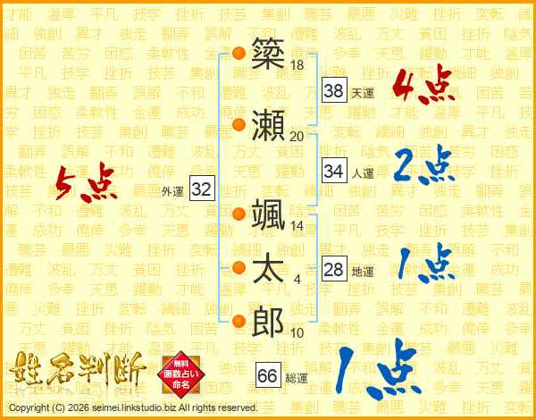 簗瀬颯太郎さんの総運は66画の1点!