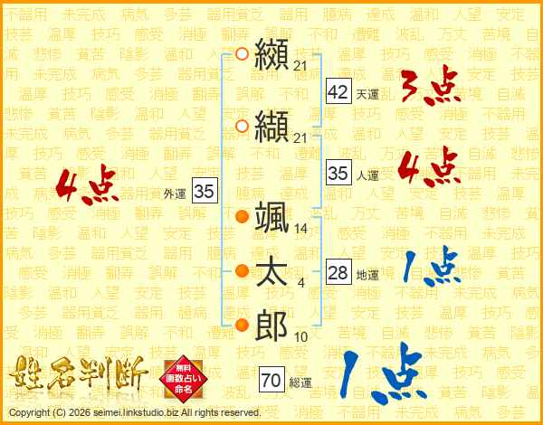 纐纈颯太郎さんの人運は35画の4点!