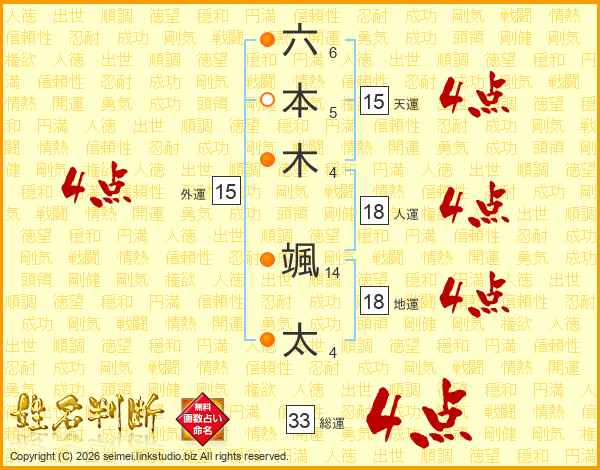 六本木颯太さんの総運は33画の4点!