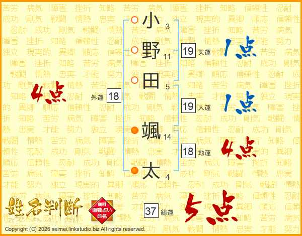小野田颯太さんの総運は37画の5点!