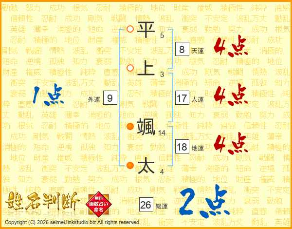 平上颯太さんの総運は26画の2点!