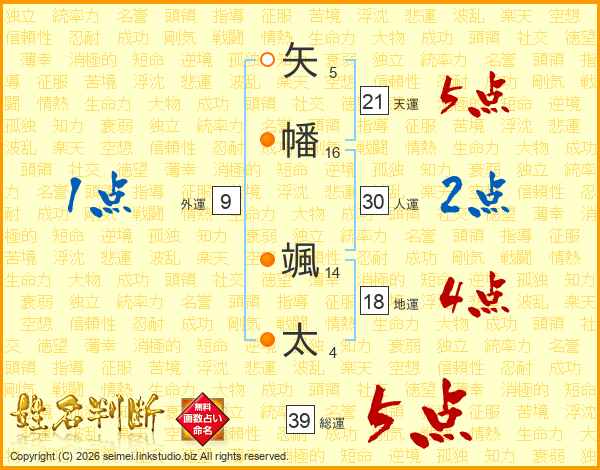 矢幡颯太さんの総運は39画の5点!