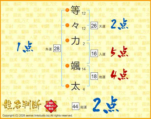 等(12画)々(12画)力(2画) 颯(14画)太(4画)