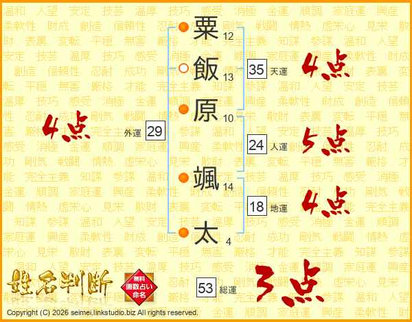 粟(12画)飯(13画)原(10画) 颯(14画)太(4画)