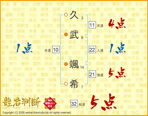 久武颯希さんの人運は22画の1点!