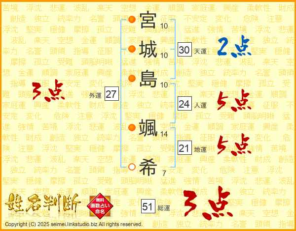 宮城島颯希さんの天運は30画の2点!