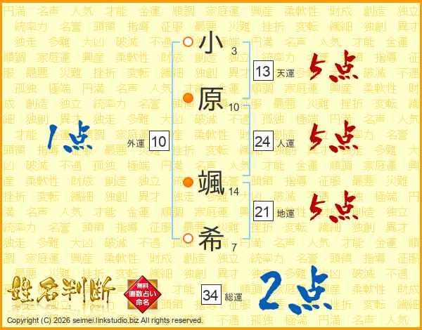 小原颯希さんの総運は34画の2点!