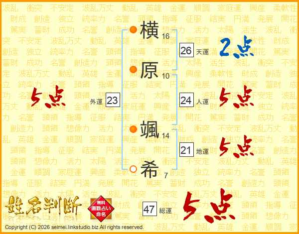横原颯希さんの総運は47画の5点!