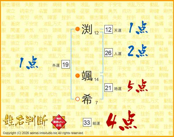 渕(12画) 颯(14画)希(7画)