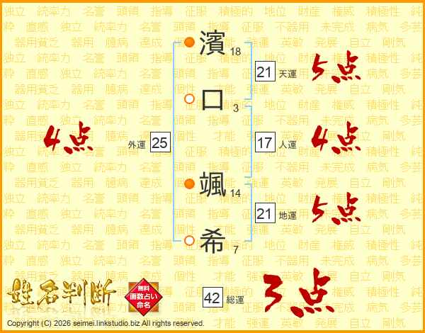 濱口颯希さんの天運は21画の5点!