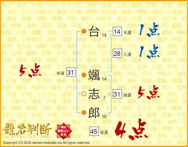 台颯志郎さんの総運は45画の4点!
