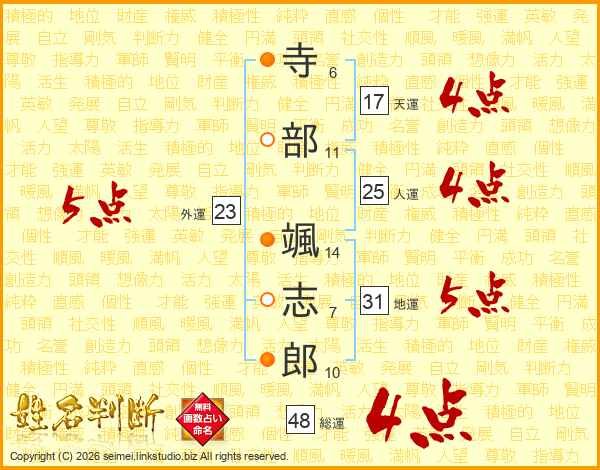 寺(6画)部(11画) 颯(14画)志(7画)郎(10画)